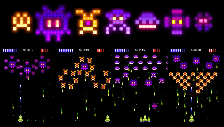 2D graphics for a range of arcade games in super-glowey 'neo-retro' style